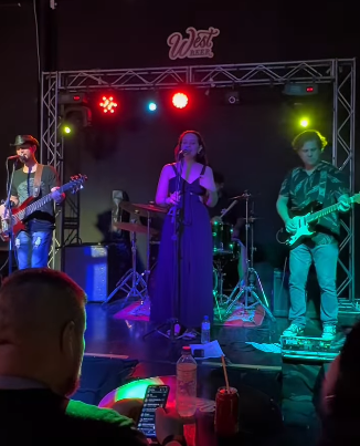 De fazer a voz guia até pedir “me ensina a cantar” ao baixista e vocalista da banda Rota Alternativa, Juliano Falcão, é uma longa história, que iremos resumir. Ele a ensinou a cantar e hoje é o companheiro da cantora, não apenas na música, mas na vida. “O Juliano deu algumas aulas e acabou dizendo que para que eu cantasse, teria que montar uma banda e ter um repertório”, disse, completando: “Até hoje eu acho que ele não pensou que eu seguiria adiante”.