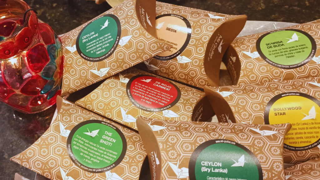 Os chás vêm de diferentes partes do mundo — China, Japão, África, Índia, Assam, Sri Lanka, Ceilão, Sumatra, Tailândia, Turquia, Madagascar e outras regiões da Ásia — e todas as combinações são elaboradas na União Europeia.
