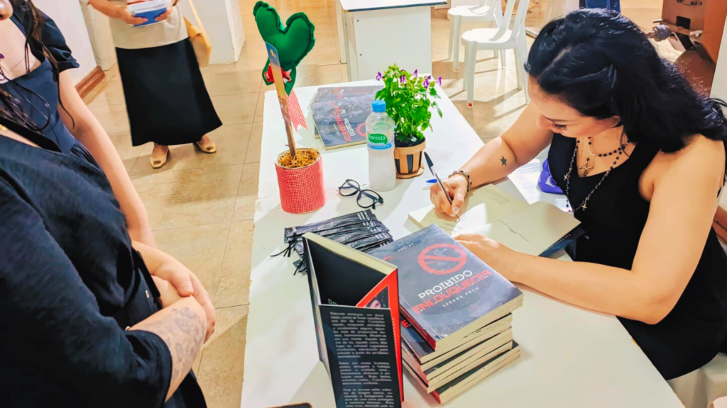 Lançado na Feira do Livro de Uruguaiana de 2024, no teatro Rosalina Panfolfo Lisboa, Proibido Enlouquecer nasceu de madrugadas de escrita solitária. “Em 2022, nas férias de inverno, pegava o celular, botava uma playlist e escrevia nos rascunhos do Gmail. Foi assim que criei o livro — um conto por noite. Parecia que eu estava em companhia daqueles personagens tão fortes, sensíveis e loucos. Quando terminei, achei que valia compartilhar.” A obra reúne dez contos em que personagens esbarram em situações-limite, “por isso cada história é tão envolvente”, dizem os leitores que a avaliaram.