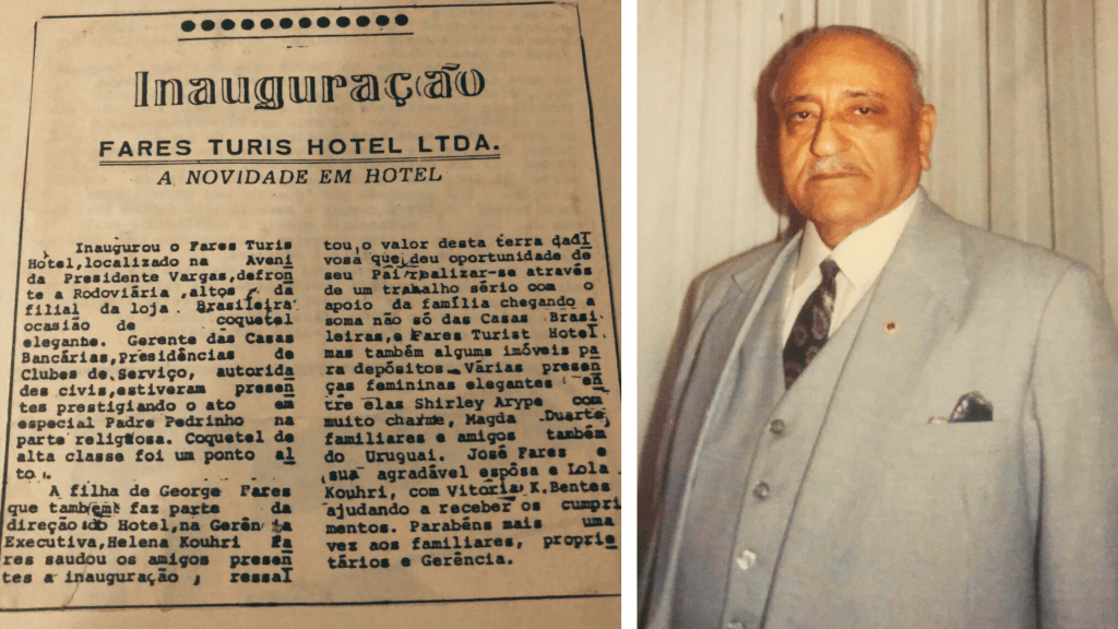 Notícia no jornal da época, sobre a inauguração do hotel do empresário George Fares (foto)