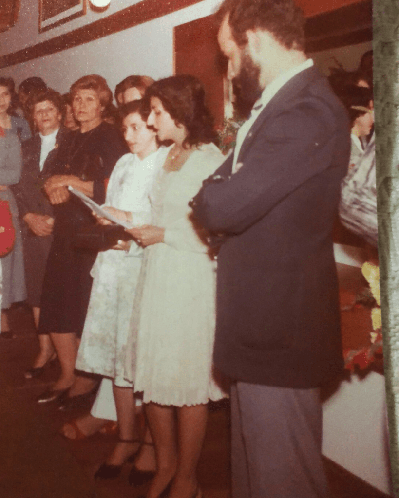 Na foto, Helena (com papel na mão), no dia da inauguração do Fares Turis Hotel.