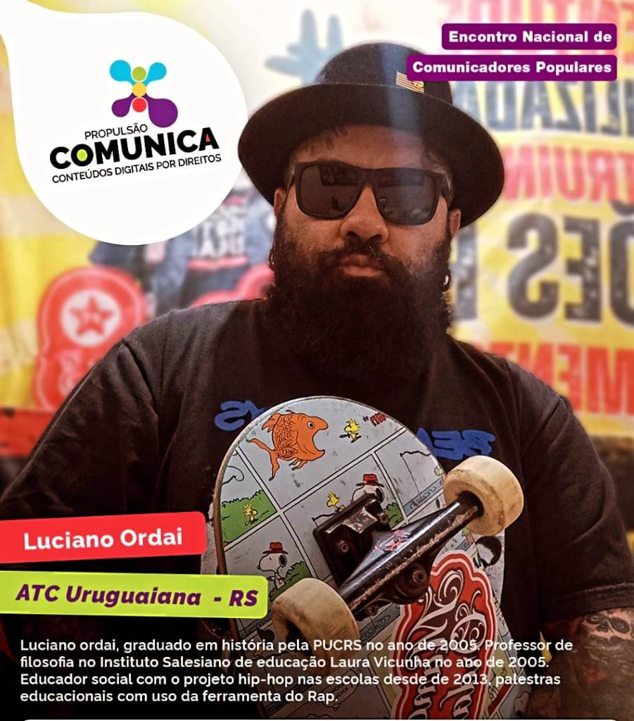 Luciano Ordai que recentemente rodou o documentário “Hip Hop nas Escolas” e atua como agente territorial de Cultura do Minc, consolidou-se como uma das maiores referências do setor na região. Com uma trajetória que une o asfalto do skate à força das rimas, o artista levou o nome de Uruguaiana para a Nave Coletiva da Mídia Ninja, em São Paulo. Agora prepara-se para uma turnê europeia em agosto, com shows do Rap Pampa Crew confirmados na Bélgica.