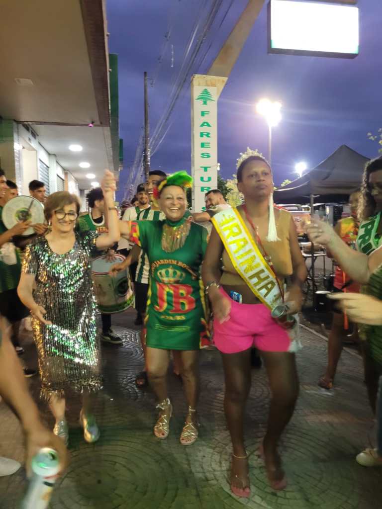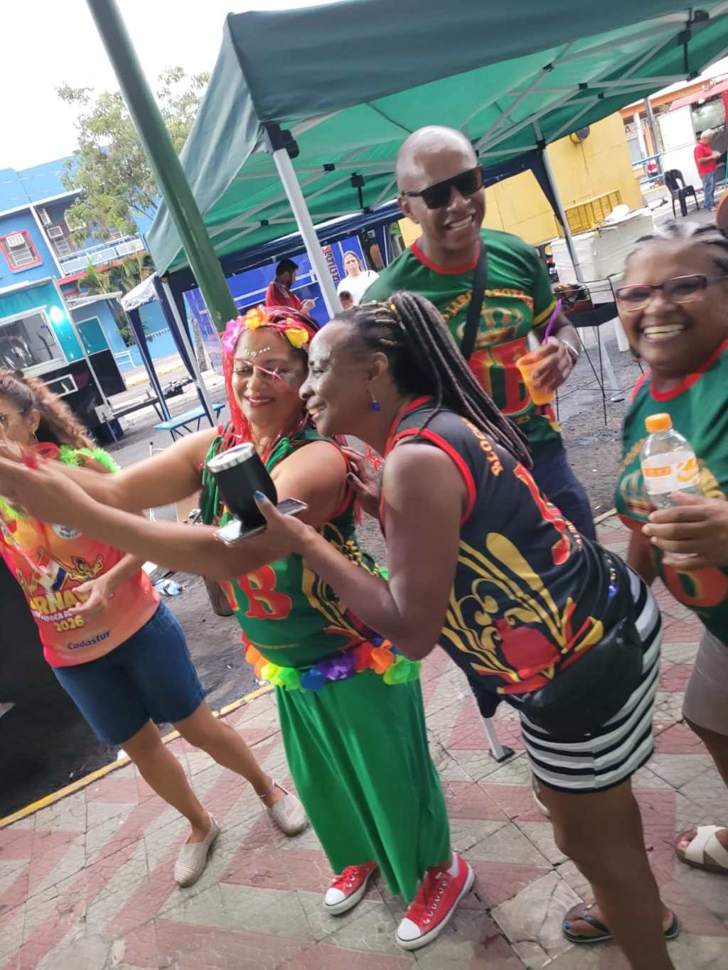 Mesmo depois de uma noite intensa acompanhando os desfiles na avenida, os visitantes se reuniam novamente para celebrar. Escolas de samba locais levavam passistas e integrantes para animar o público. Entre eles, destacou-se Dudu do Samba, um dos nomes lembrados por Helena.